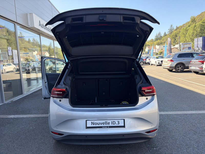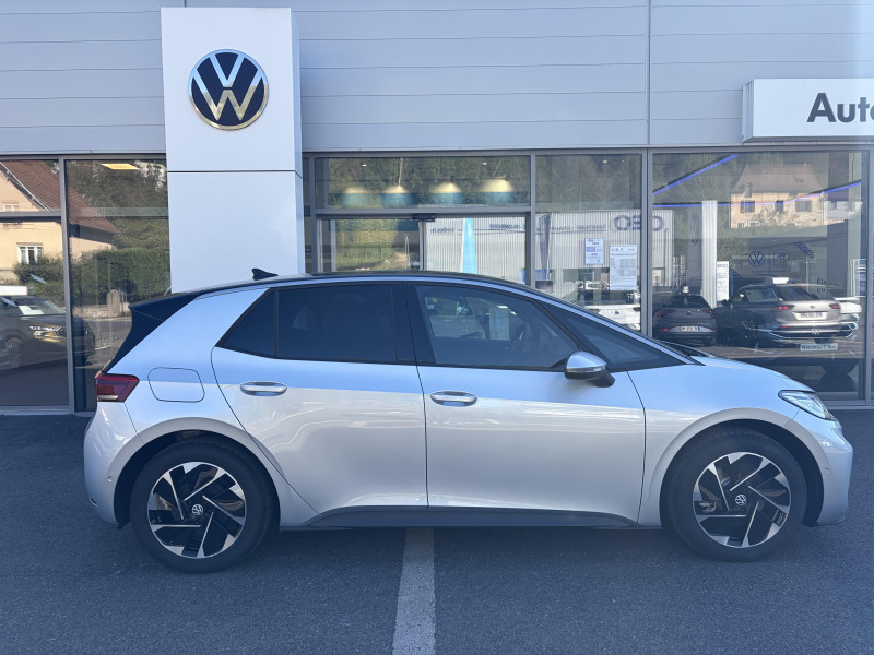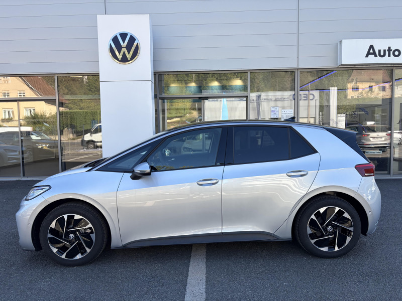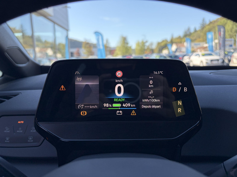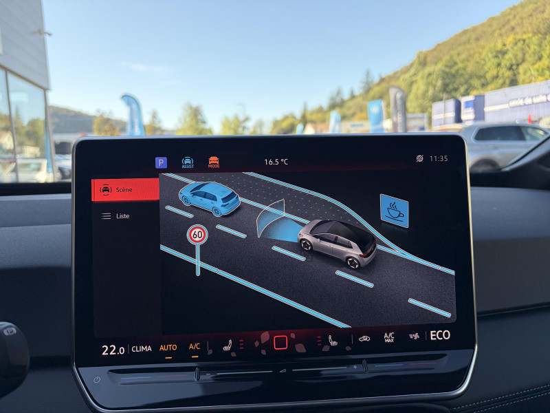 activation automatique du signal de détresse en cas de freinage d'urgence / allumage automatique des feux, capteurs de pluie avec essuie-glace automatique / buses à dégivrage automatique à l'av / climatisation stationnaire permet de réfrigérer, de ventiler ou de chauffer l'habitacle du véhicule à l'arrêt. elle permet également de dégivrer le pare-brise, de le désembuer et de le débarrasser d'une fine couche de neige en hiver. la climatisation stationnaire est alimentée par la prise de courant ou par la batterie haute tension du véhicule / eclairage à led de la plaque d'immatriculation ar / frein de stationnement électromécanique avec fonction d'immobilisation en pente "auto hold" la fonction auto hold garantit une immobilisation du véhicule sans déplacement intempestif, la pédale de frein ne devant pour cela pas être maintenue actionnée / id. display de 5,3'' l'id. display est un combiné d'instruments numérique doté d'un afficheur couleur tft à haute résolution. en plus du tachymètre numérique, il est possible d'afficher des informations supplémentaires provenant des systèmes d'aide à la conduite, par la sélection de divers profils d'information / intervention de freinage automatique lors des manoevres / jantes 18'' "east derry" bicolore argent pneumatiques 215/55 r18 / pack assistance système d'ouverture et de fermeture sans cléà distance 'keyless access advanced', caméra de recul 'rear view' située dans le logo volkswagen, intelligent park assist plus : système d'aide au stationnement av et ar, système proactif de protection des occupants - pre safe assist, alarme antivol - protection volumétrique et anti-soulèvement, Éclairage des poignées de portes / pack confort - volant multifonction, chauffant, avec commande tactile et capacitif - climatiseur 2-zones 'air care climatronic' avec filtre à charbon actif - sièges av chauffants - système de navigation & infotainment discover pro avec services de streaming et radio via internet, fonction planificateur d'itinéraire - interface téléphonique "confort" avec fonction de chargement inductive / pack extérieur projecteurs iq. light matrix led avec commutation automatique des feux de route, éclairage de mauvais temps et fonction de bienvenue, régulation dynamique des feux de route "dynamic light assist, bande lumineuse entre les projecteurs et le logo, feux ar à led avec clignotants séquentiels, vitres ar sur-teintées / park pilot - aide au stationnement av et ar / projecteurs led et feux ar à led / rétroviseur intérieur à réglage jour/nuit automatique / système d'aide à l'éco-conduite - eco assistance / système d'appel d'urgence - ecall appel d'urgence manuel ou automatique / système de freinage anti-multi collision ce dispositif freine automatiquement le véhicule après un premier choc afin de limiter le risque de multicollision / sélecteur de vitesse situéà droite derrière le volant avec frein de stationnement électronique il dispose d'une marche av (d/b), du neutre (n) et d'une marche ar (r). en position (d), la récupération d'énergie au freinage est en mode normal. en position (b), le système d'aide à l'éco-conduite est activé et la récupération d'énergie est plus élevée / 2 port usb-c à l'av (recharge et data) et 2 à l'ar (recharge) / 7 airbags airbags frontaux av conducteur et passager (airbag passager désactivable par clé), airbags latéraux à l'av, airbags interactif à l'av et avec airbags de tête av/ar, airbag central situé sur le côté droit du siège conducteur, permet la protection des chocs entre les occupants des sièges av en cas de collision latérale ou de retournement / acc: régulateur de vitesse adaptatif avec limiteur de vitesse adapte la vitesse en fonction des limitations de vitesse détectées / accoudoirs pour les sièges av / app-connect sans fil (en fonction du téléphone compatible) pour apple carplay, android auto et mirror link (avec fil) / avertissement de distance avec le véhicule précédent / avertisseur sonore 1 ton / avertisseur sonore et lumineux pour ceintures non attachées av et ar / banquette ar 3 places rabattable (2/3 - 1/3) avec trappe à skis / capacité de batterie nette - 59 kwh / capacité de puissance de recharge maximale sur prise ccs : 165 kw dc / capacité de puissance maximale du chargeur embarqué pour prise type 2 : 11 kw ac / car2x la fonction car2x utilise les informations des autres véhicules présents dans un périmètre pouvant s'étendre jusqu'à 800 mètres, ainsi que les signaux des infrastructures de transport pour avertir le conducteur et transmettre ces avertissements à d'autres véhicules équipés de la fonction car2x / carrosserie bicolore - toit et hayon noir / clignotants confort : (1) touche = (3) clignotements / commande vocale intuitive -"bonjour id." - certaines fonctions peuvent être exécutées grâce à la commande vocale / console centrale rétroéclairée avec rangements, volet occultant, 2 porte-gobelets / correcteur électronique de trajectoire esp, amplificateur de freinage d'urgence afu, servofrein électromécanique ebkv, freinage mixte bku, système d'antiblocage des roues abs, blocage électronique de différentiel eds,répartiteur électronique de freinage ebv,anti patinage électronique asr, régulateur électronique de couple msr et assistance au contre-braquage, programme électronique de stabilisation esc,système agissant comme un différenti.autobloquant électronique permettant une meilleure motricité en courbe grâce à une répartition optimale de la puissance et du couple sur les roues ar xds / câble de recharge mode 3 - type 2 pour borne de recharge (32 a) / direction électromécanique à assistance variable en fonction de la vitesse / détection de fatigue système de détection de fatigue du conducteur qui analyse le comportement du conducteur et recommande un temps de repos par l'apparition d'un message visuel et sonore / e-sound - son spécifi