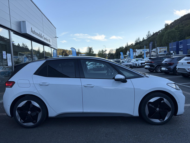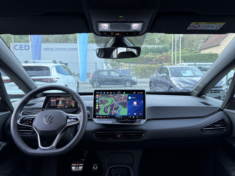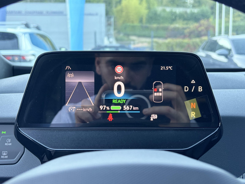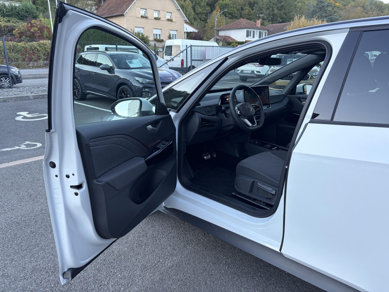 activation automatique du signal de détresse en cas de freinage d'urgence / allumage automatique des feux, capteurs de pluie avec essuie-glace automatique / buses à dégivrage automatique à l'av / climatisation stationnaire: permet de réfrigérer, de ventiler ou de chauffer l'habitacle du véhicule à l'arrêt. elle permet également de dégivrer le pare-brise, de le désembuer et de le débarrasser d'une fine couche de neige en hiver. la climatisation stationnaire est alimentée par la prise de courant ou par la batterie haute tension du véhicule / eclairage à led de la plaque d'immatriculation ar / frein de stationnement électromécanique avec fonction d'immobilisation en pente "auto hold" la fonction auto hold garantit une immobilisation du véhicule sans déplacement intempestif, la pédale de frein ne devant pour cela pas être maintenue actionnée / id. display de 5,3'': l'id. display est un combiné d'instruments numérique doté d'un afficheur couleur tft à haute résolution. en plus du tachymètre numérique, il est possible d'afficher des informations supplémentaires provenant des systèmes d'aide à la conduite, par la sélection de divers profils d'information / intervention de freinage automatique lors des manoevres: l'intervention de freinage automatique d'un système de stationnement est utilisée pour réduire le risque de collision si un obstacle est détecté pendant le processus de stationnement / jantes en alliage 20" 'sanya' bicolore argent pneumatiques airstop 215/45 r20 / park pilot - aide au stationnement av et ar / projecteurs led et feux ar à led / préparation pour activation ultérieure de la navigation via upgrades / rétroviseur intérieur à réglage jour/nuit automatique / sign assist - système de détection de la signalisation routière le système de détection de la signalisation routière détecte les panneaux de signalisation standard à l'aide d'une caméra située dans le pied du rétroviseur intérieur et vous informe des limitations de vitesse, interdictions de dépasser et panneaux de danger identifiés / système d'aide à l'éco-conduite - eco assistance / système d'appel d'urgence - ecall appel d'urgence manuel ou automatique / système de freinage anti-multi collision ce dispositif freine automatiquement le véhicule après un premier choc afin de limiter le risque de multi collision / sélecteur de vitesse situéà droite derrière le volant avec frein de stationnement électronique il dispose d'une marche av (d/b), du neutre (n) et d'une marche ar (r). en position (d), la récupération d'énergie au freinage est en mode normal. en position (b), le système d'aide à l'éco-conduite est activé et la récupération d'énergie est plus élevée / 2 port usb-c à l'av (recharge et data) et 2 à l'ar (recharge) / 7 airbags airbags frontaux av conducteur et passager (airbag passager désactivable par clé), airbags latéraux à l'av, airbags interactif à l'av et avec airbags de tête av/ar, airbag central situé sur le côté droit du siège conducteur, permet la protection des chocs entre les occupants des sièges av en cas de collision latérale ou de retournement / acc: régulateur de vitesse adaptatif avec limiteur de vitesse adapte la vitesse en fonction des limitations de vitesse détectées / accoudoirs pour les sièges av / app-connect sans fil (en fonction du téléphone compatible) pour apple carplay, android auto et mirror link (avec fil). / avertissement de distance avec le véhicule précédent / avertisseur sonore 1 ton / avertisseur sonore et lumineux pour ceintures non attachées av et ar / banquette ar 3 places rabattable (2/3 - 1/3) avec trappe à skis / capacité de batterie nette - 77 kwh / capacité de puissance de recharge maximale sur prise ccs : 175 kw dc / capacité de puissance maximale du chargeur embarqué pour prise type 2 : 11 kw ac / car2x la fonction car2x utilise les informations des autres véhicules présents dans un périmètre pouvant s'étendre jusqu'à 800 mètres, ainsi que les signaux des infrastructures de transport pour avertir le conducteur et transmettre ces avertissements à d'autres véhicules équipés de la fonction car2x / clignotants confort : (1) touche = (3) clignotements / climatiseur 1-zone "climatronic" avec mode recyclage de l'air ambiant / commande vocale intuitive -"bonjour id." - certaines fonctions peuvent être exécutées grâce à la commande vocale / console centrale rétroéclairée avec rangements, volet occultant, 2 porte-gobelets / correcteur électronique de trajectoire esp, amplificateur de freinage d'urgence afu, servofrein électromécanique ebkv, freinage mixte bku, système d?antiblocage des roues abs, blocage électronique de différentiel eds,répartiteur électronique de freinage ebv,anti patinage électronique asr, régulateur électronique de couple msr et assistance au contre-braquage, programme électronique de stabilisation esc,système agissant comme un différenti.autobloquant électronique permettant une meilleure motricité en courbe grâce à une répartition optimale de la puissance et du couple sur les roues ar xds / câble de recharge mode 3 - type 2 pour borne de recharge (32 a) / direction électromécanique à assistance variable en fonction de la vitesse / détection de fatigue système de détection de fatigue du conducteur qui analyse le comportement du conducteur et recommande un temps de repos par l'apparition d'un message visuel et sonore / e-sound - son spécifique id: l'e-sound est un bruit électronique de moteur signalant l'approche de véhicules électriques aux autres usagers de la route. plus le véhicule roule vite, plus le volume sonore de l'e-sound diminue lentement / eclairage d'ambiance personnalisable (10 couleurs) / eclairage des poignées de portes avec éclairage de bienvenue 'welcome light' / ecran central tactile de 12,9'' personnalisable / freins à disques av et freins à tambours ar / front assist - système de s