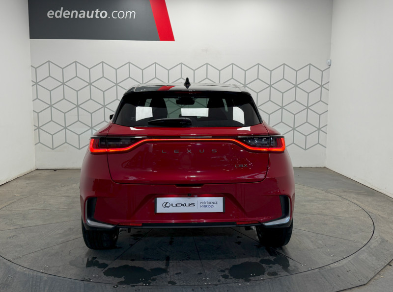 airbag pour les genoux (conducteur) / antenne de toit type aileron de requin / appuie-tête ar à 2 réglages manuels / appuie-têtes av à 2 réglages manuels / avertisseur sonore piétons (avas) / boîte automatisée a variation continu / bouton de désactivation de l'airbag (passager av) / calandre trapézoïde avec garniture argentée / capteurs de stationnement av et ar et ar intelligents (ics) / cléélectronique (smart key) / clignotants av à led / climatisation automatique bi-zone avec contrôle à distance, recirculation automatique et purificateur d'air / commandes montées sur le volant, système audio/affichage/téléphone/reconnaissance vocale/drcc/lta / contrôle de stabilité anti-roulis pour remorque / coques de rétroviseurs extérieurs noires / couvre-coffre, rabattable manuellement / eclairage d'ambiance monocolore / esp (direction assistée électriquement) / essuie-glace av à détecteur de pluie / feux av à led simple lentille avec réglage manuel de la hauteur du faisceau et feux automatiques (ahb) / feux de détresse automatiques (fhl) / feux de stop actifs / fixation i-size, sièges ar gauche et droit / jantes en alliage 18" gris foncé avec finition usinée avec pneumatiques 225/55 r18 / kit de réparation des pneus / lave caméra / lexus safety system+ 3 : assistance à la conduite proactive (pda) lecture automatique des panneaux de circulation (rsa), régulateur de vitesse dynamique (drcc) avec rédution de la vitesse en courbe, système de maintien dans la file de circulation (lta), système de sécurité pré-collision (pcs) avec détection diurne et nocturne des piétons et cyclistes, des motos (de jour uniquement), détection des intersections (ita), correction active de trajectoire (esa) et système de freinage d'urgence (edss) / mode ev (100 % électrique) / moniteur d'angle mort (bsm) avec avertisseur de circulation ar intelligent (rctab) / moniteur de surveillance du conducteur (driver monitor) / moulures de cadres de vitres latérales en acier inoxydable argenté / moulures de portières noires / pare-chocs ar avec échappement dissimulé / pare-chocs av et ar avec garniture argentée / peinture bi-ton avec rétroviseurs extérieurs et toit peints en noir / plaques de seuils de portes av en résine avec insert métallique, avec inscription lexus / pommeau de levier de vitesse gainé de tahara / porte-gobelets av / prétensionneurs de ceintures de sécuritéà l'av et aux places ar gauche et droite / prise de courant 12 v à l' av / prise de courant 12 v dans le coffre / rappel visuel et sonore pour ceintures de sécurité, sièges av et ar / rétroviseur intérieur électrochrome / rétroviseurs extérieurs avec fonction recul et fonction électrochromatique (côté conducteur) / safe exit assist (sea)- assistant de sortie du véhicule / sélecteur de mode de conduite eco/normal / siège passager av à 6 réglages manuels / support lombaire à 2 réglages, siège conducteur / surpiqûres tatami double ligne rouge, avec double couture sur les rembourrages / système antivol avec antidémarrage / alarme sonore / capteur d'intrusion / système audio premium à 6 hp / système d'appel d'urgence (ecall) / système de contrôle actif du son (anc) / système de contrôle de la pression de gonflage des pneumatiques (tpws) avec localisation automatique / système de freinage, stabilité, direction et d'antipatinage : abs, bas, ebd, ecb-r, epb, eps,trc,vsc / système de surveillance du conducteur (driver monitor) / système multimédia lexus link connect : ecran tactile 9,8", intégration smartphone (apple carplay sans fil et android auto), services connectés lexus link+, système de navigation basé sur le cloud (pendant 4 ans) / tableau de bord garni de tahara / vitrage anti uv et isolant / vitres latérales ar et lunette ar surteintées / vitres latérales av à traitement acoustique / volant à 3 branches, revêtement tahara